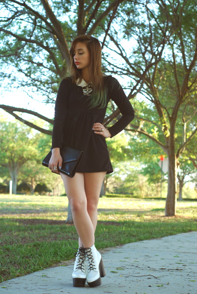 Your go-to outfit for a night out is... I usually go for a nice body-con dress with a jean jacket over it and a pair of giant platform boots.